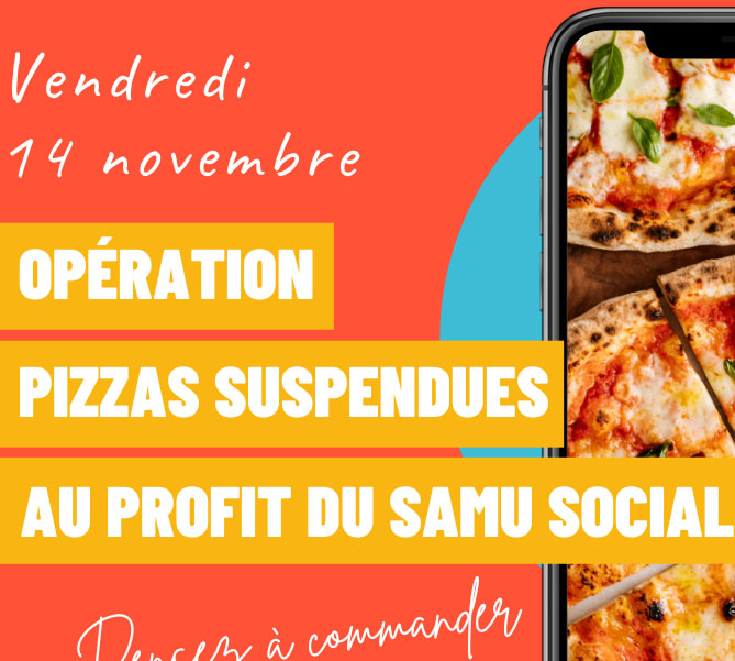 ProchEnsemble organise une opération Pizzas suspendues le vendredi 14 novembre 2025 entre 18h00 et 20h30 au profit du Samu Social. Le Samu Social va à la rencontre des personnes à ...